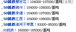 今日國內(nèi)各地區(qū)釩鐵具體價格如下: