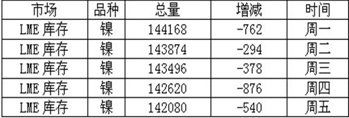表1:本周倫鎳庫存變化