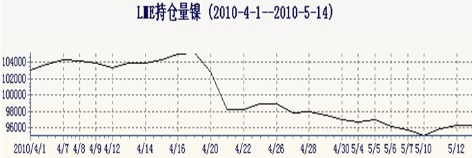 上周五晚,受美國較好就業(yè)數據支撐,倫鎳展開反彈,縮量上漲451美元,漲幅2.06%;本周一,歐盟啟動巨額援助計劃,市場風險偏好顯著提高,歐美股市與大宗商品報復性反彈,倫鎳盤中一度沖高至23650美元,后因穆迪警告未來四周或下調希臘和葡萄牙信用評級回吐部分漲幅,當日收盤漲649 美元至22950美元;周二,周三歐元區(qū)危機解決機制仍存不確定性,加之中國強勁通脹數據引發(fā)加息的擔憂,風險厭惡情緒再度回歸市場,LME各金屬品種向 下尋求支撐,倫鎳反彈走勢受阻,弱勢橫盤震蕩,在21820—23270美元區(qū)間交易;周四,西班牙與葡萄牙應對債務危機新舉措提振市場人氣,倫銅收盤上 漲1%以上,倫鎳收盤漲199美元至22790美元。