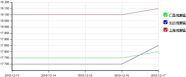 圖1:全國(guó)主要地區(qū)電解錳價(jià)格走勢(shì)圖(2010.12.13-2010.12.17)
