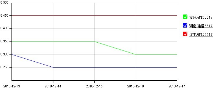 圖2:全國(guó)主要地區(qū)錳合金走勢(shì)圖(2010.12.13-2010.12.17)