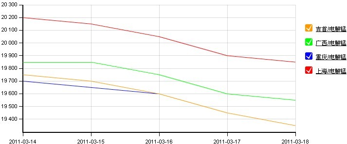 圖1:全國(guó)主要地區(qū)電解錳價(jià)格走勢(shì)圖(2011.3.14-2011.3.18)