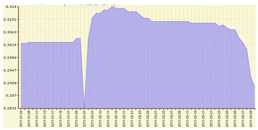 4月7日歐洲央行宣布加息25個基點至1.25%,這是歐洲央行三年來首次升息。特里謝表示,將繼續(xù)“嚴(yán)密”監(jiān)視通脹風(fēng)險。去年12月份歐元區(qū)通脹率突破歐洲央行2%的警戒線,今年三月加速上升至2.6%,創(chuàng)兩年多來最高水平。