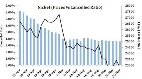 表二:本周倫鎳庫(kù)存與注銷倉(cāng)單占比變化