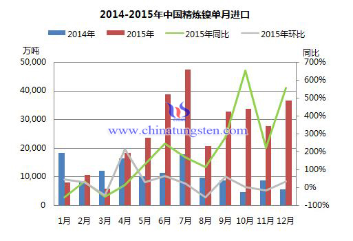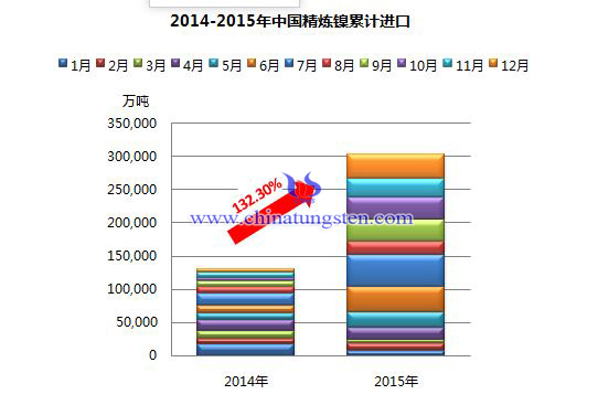 2015年中國精煉鎳進(jìn)口量同比翻番不止