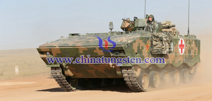 鎢合金裝甲的密度大、硬度高、韌性好,用于軍事裝備以及軍用設施上,能夠防御一定的物理攻擊(包括動能,熱能,電磁輻射等)、減輕受保護目標傷害的結(jié)構(gòu)。當穿甲彈撞中鎢合金裝甲時,彈頭的能量雖穿透裝甲,但彈頭的動能有較大損失,傷害也就減小,從而使得鎢合金裝甲得以保存。